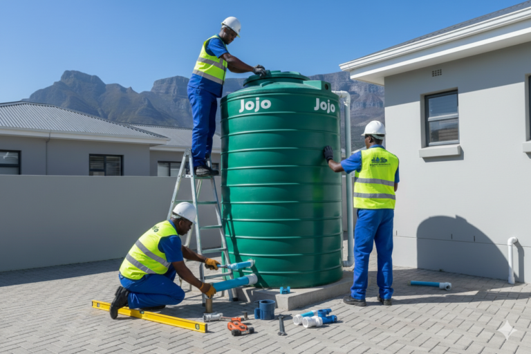 JoJo tank installation provides a reliable storage solution for harvested rainwater, borehole water, or municipal backups, helping you achieve water independence and resilience against shortages. Our installation process commences with a site evaluation to select the ideal tank size and location, considering factors like roof runoff for rainwater collection, proximity to usage points, and ground stability.